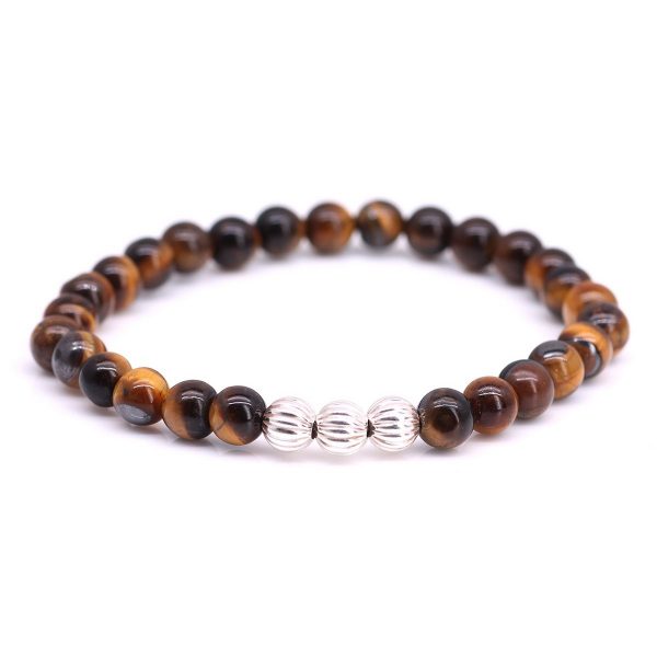 Deze Minimal Brown Tiger Eye armband is gemaakt van 6mm bruine tijgeroog edelstenen met drie stuks 925 sterling zilveren spacers. Alles wordt bij elkaar gehouden door een 1 mm dik doorzichtig elastisch koord voor gemakkelijke draagbaarheid. Op het elastische koord zit 6 maanden garantie. Het pakket bevat ook een katoenen linnen tas met een FortunaBeads-logo voor veilige opslag.